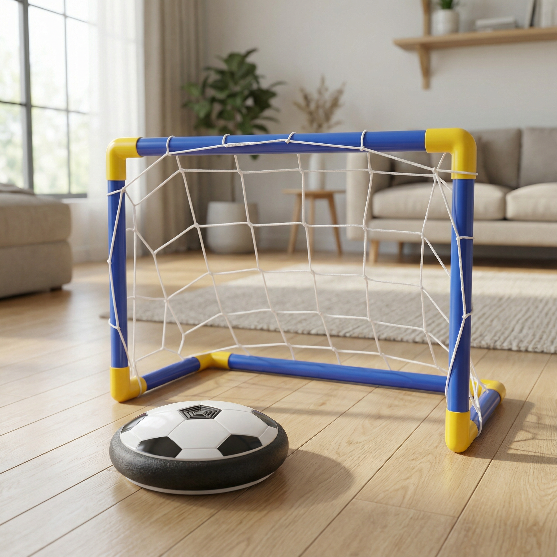 Po naładowaniu naciśnij przycisk zasilania – diody LED zaczną świecić, a piłka zacznie unosić się na poduszce powietrznej.